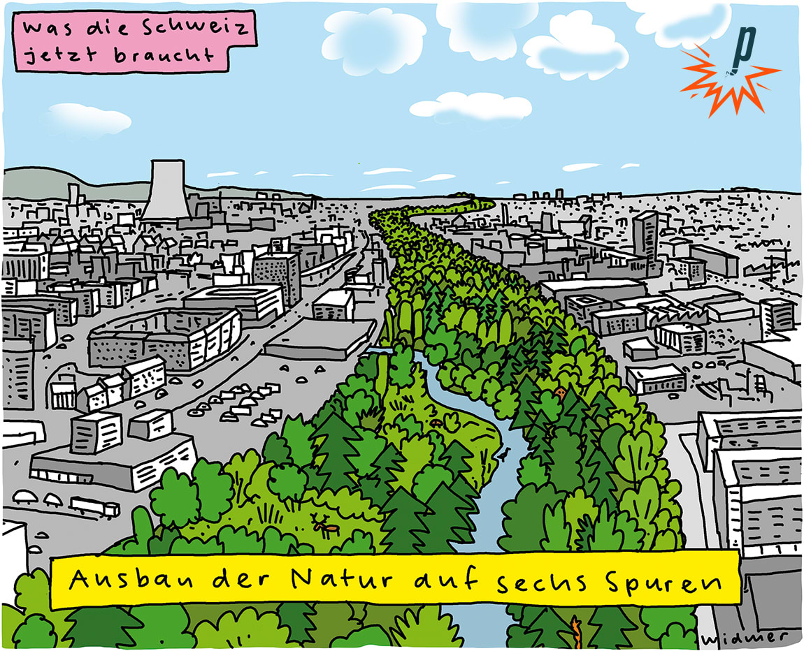 Ruedi Widmer, geboren 1973, ist selbständiger Grafiker, Cartoonist und Kolumnist in Winterthur.