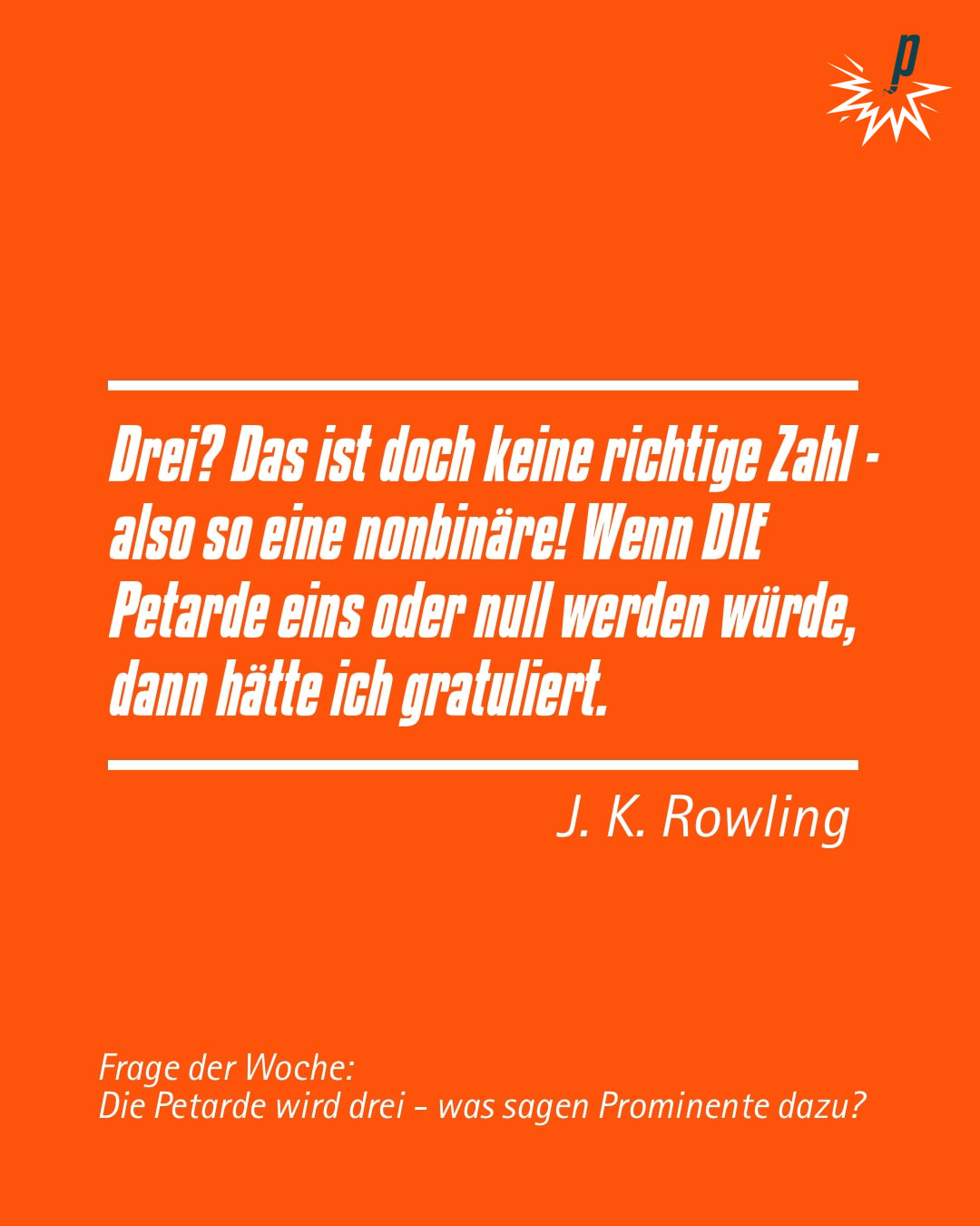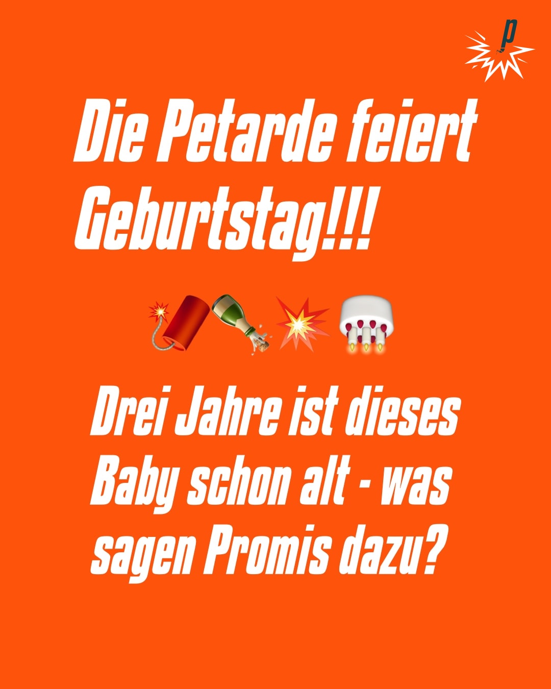 Beitrag "3 Jahre Petarde - das sagen Promis dazu" öffnen2. Oktober 2025, 14:53 Uhr3 Jahre Petarde - das sagen Promis dazuShareLink kopiert2